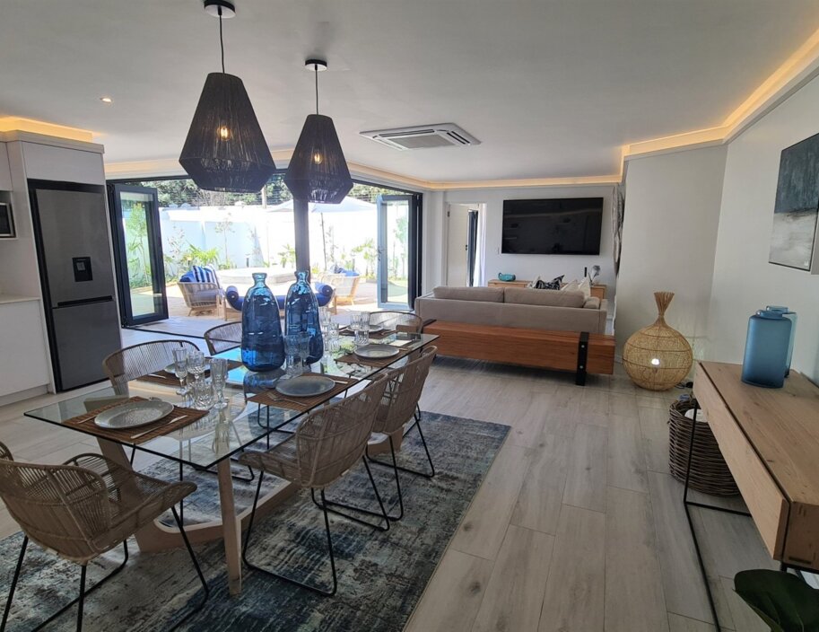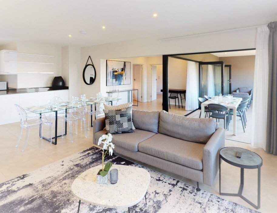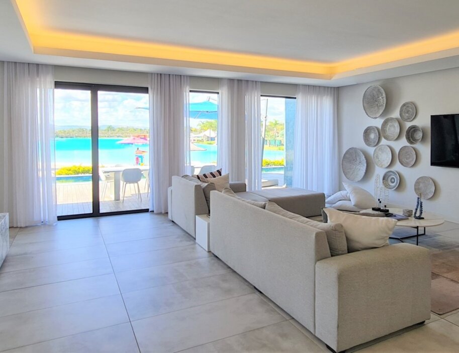 Indulge in an island-inspired vacation with your very own beach-themed oasis, complete with a jacuzzi, all secluded within a private courtyard. Enjoy the African sunshine and feel the grains of sand beneath your feet. This suite comprises a master suite and a guest suite, each with luxurious XL King beds draped in silky satin sheets. The en-suite bathrooms feature both a shower and bath. The spacious open-plan area includes a fully equipped kitchen, a dining space, and a lounge area, providing all the necessary amenities for an ideal holiday. Additionally, you can enjoy the convenience of a 24/7 butler service.