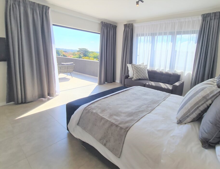 Our 145sqm Deluxe Penthouse, boasts breathtaking views of the northern suburbs of Johannesburg and Sandton. As you enter, you'll be greeted by a spacious living area that opens up onto a covered balcony featuring a fully equipped kitchen, a dining area, and a lounge. Additionally, our building provides uncapped Wi-Fi, ensuring that you stay connected throughout your stay. The two spacious bedrooms include large windows and blackout curtains, that will promises a restful sleep after a day of exploring the vibrant Greenside area. Your stay with us is guaranteed to be #mint2be.